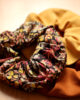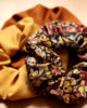 3x Scrunchies aus Tencel in Cognac/braun, Senfgelb, Vogel-Muster