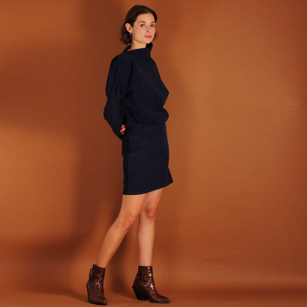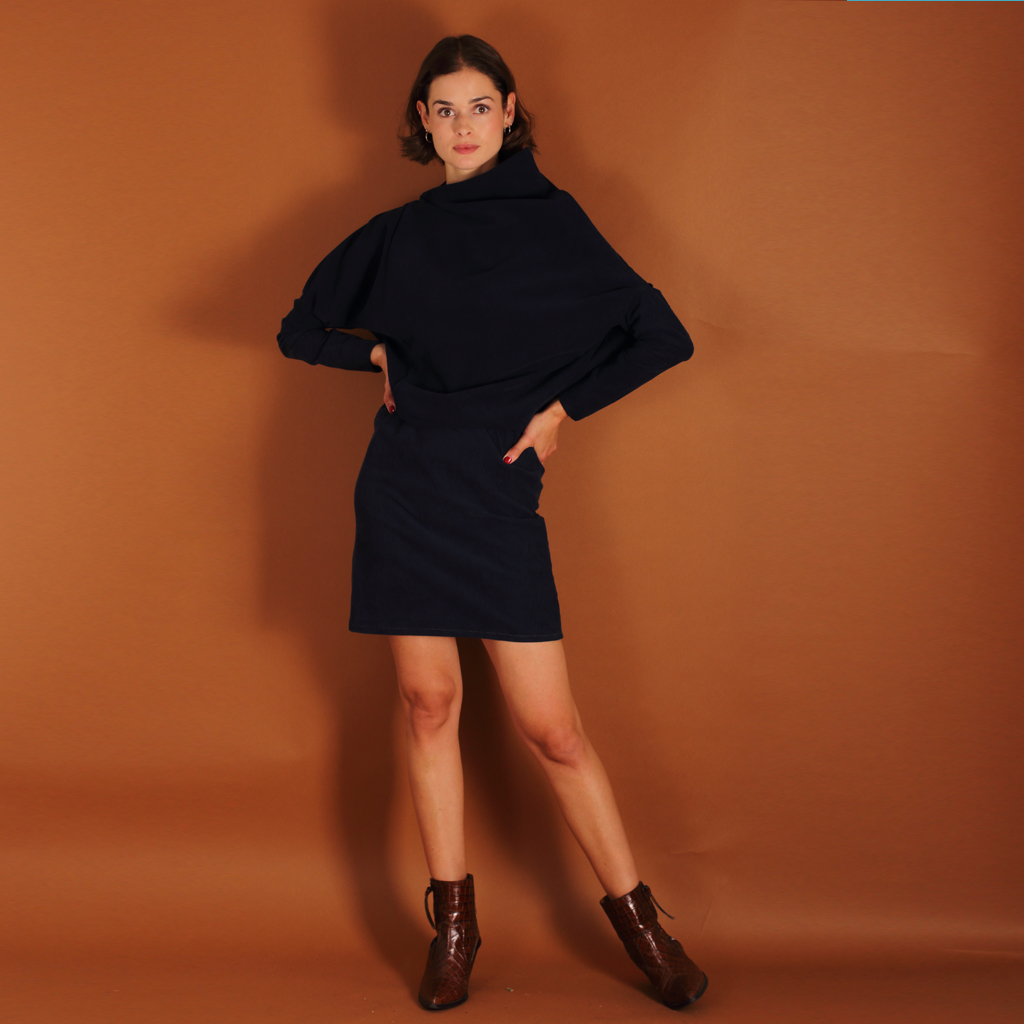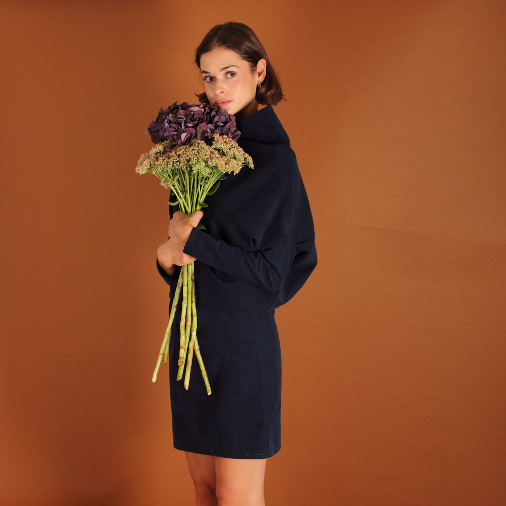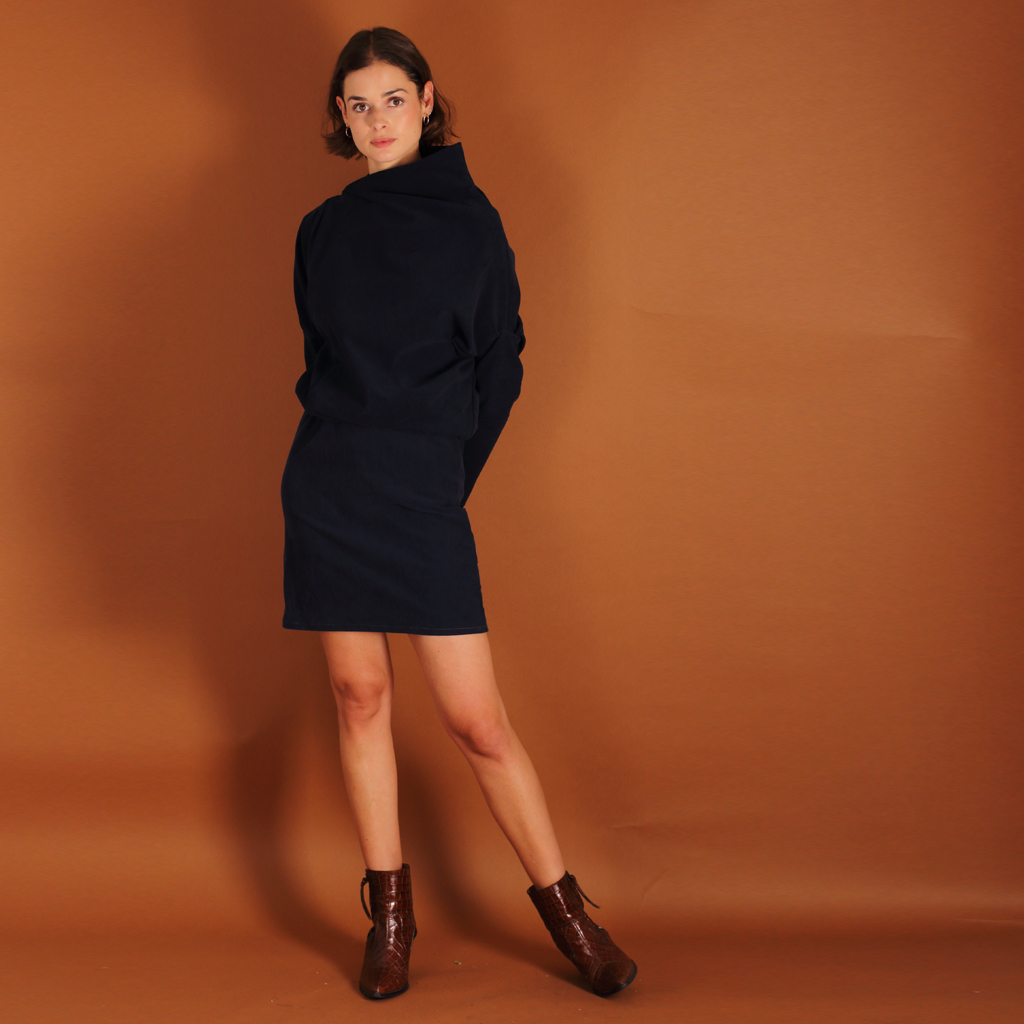 Asymmetrisches Cordkleid Juni aus Biobaumwolle kbA in blau.