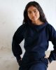 Dunkelblauer Pullover mit Stehkragen aus einem Biobaumwollcord kbA