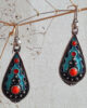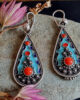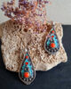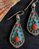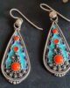 Ethno Emaille Cloissoné Ohrringe aus 925 Silber mit rot orangem Naturstein Koralle.