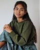 Olive grüner Pullover mit Stehkragen aus einem Biobaumwollcord kbA