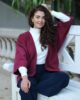 Kimonojacke aus Biobaumwolle in Berry -Samila – Cord