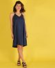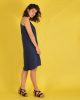 Das knielange Tencel Trägerkleid „Tamira“, fällt besonders auf durch den schönen Rückenausschnitt. Es lässt sich individuell einstellen, da die Träger (neckholder) geknotet werden.