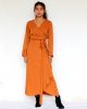 Langärmeliges Tencel Wickelkleid Falta cognac