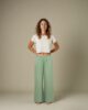 Die Culotte Yani überzeugt durch ihren elastischen Bund, der sich flexibel anpasst und für hohen Tragekomfort sorgt. Der lockere Sitz und die weite Beinform machen sie zur perfekten Wahl für Freizeit, Büro oder Reisen. Der sanfte Grünton bringt Frische in deinen Look und lässt sich vielseitig mit T-Shirts, Blusen oder Pullovern kombinieren.