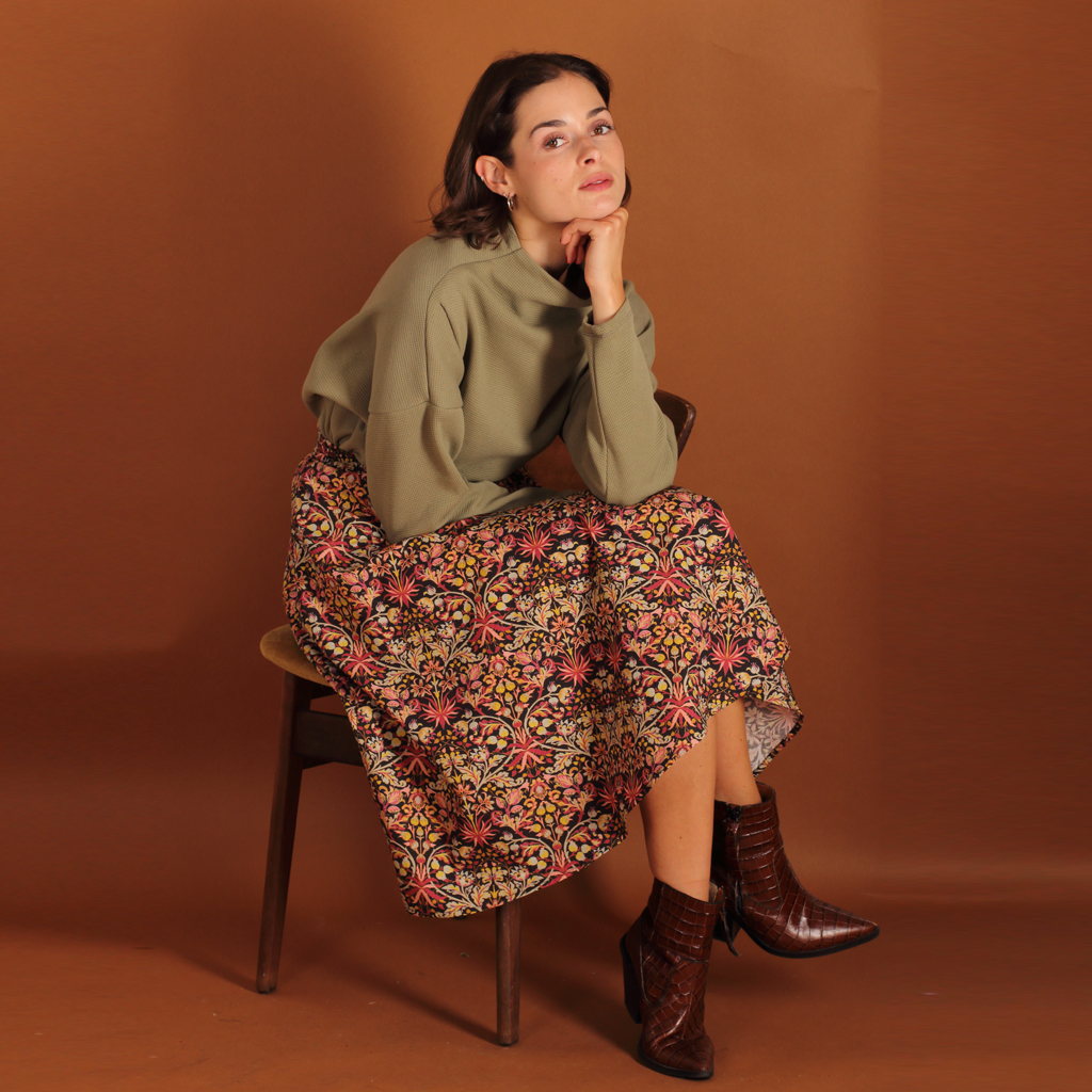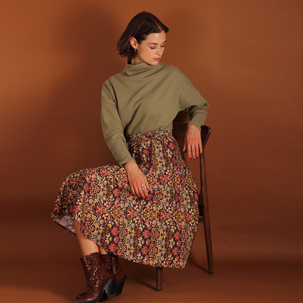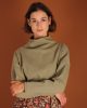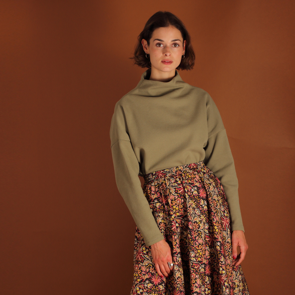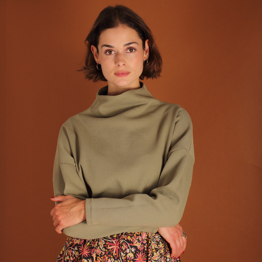 Stehkragen Pullover Dori aus einem Waffelstoff in olive.