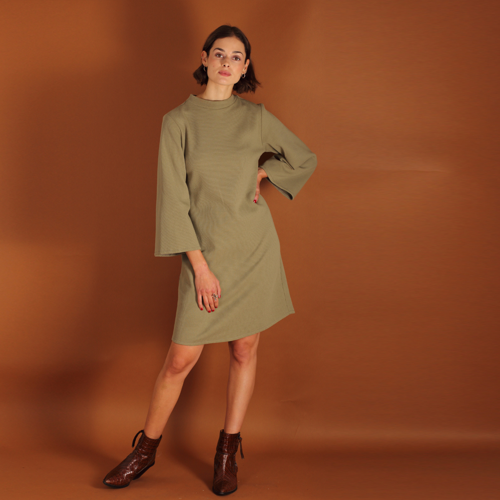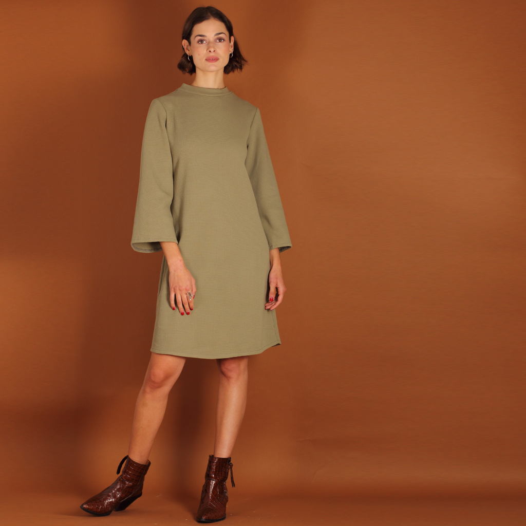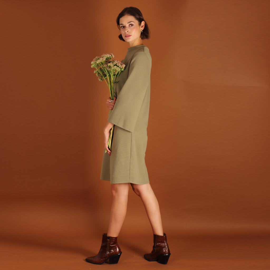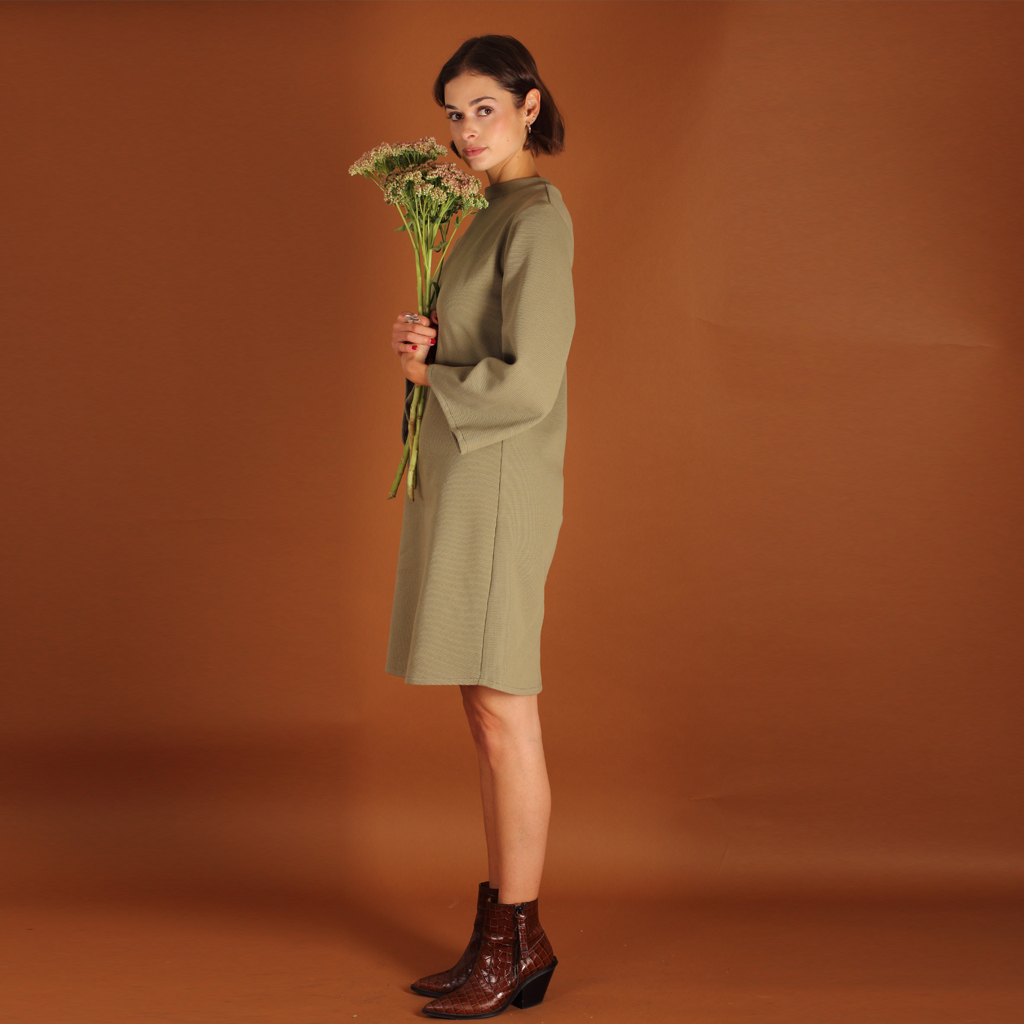 Stehkragenkleid Seyda aus einem Waffelstoff in olive