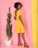 Vom Tencel Kleid Alani in Gelb bis zum Accessoire haben wir eine große Auswahl an eco fashion für Frauen/Diverse aus nachhaltigen Materialien wie Tencel, Bio Baumwolle, Bio Jersey, Modal und recycelten Materialien. Luftige Sommerkleider für Festlichkeiten und Hochzeiten aber auch alltagstaugliche Lieblingsstücke. In unserem Sortiment findest Du stilvolle Kleidungsstücke mit zeitlosem Design, von der moderne Culottes, gut kombinierbare Röcken, bis zu elegante Blusen und bequemen Pullovern. Besonders wichtig ist uns eine qualitativ hochwertige Verarbeitung. Und ein langlebiges aber dennoch verspieltes und stilvolles Design. Deshalb wird jedes Kleidungsstück mit viel Liebe und Sorgfalt auf Bestellung in Berlin hergestellt. So entsteht keine Überproduktion und wir schützen unseren Planeten. Wer nach styling Tipps sucht, kann uns gerne auf Instagram besuchen #mandutrap. Fakten: Fair & Sozial Unter fairen Bedingungen in Deutschland gefertigt. Made in Germany Das Tencel Kleid Alani in Gelb wird wie jeder Artikel fair und in Handarbeit in unserem Berliner Atelier produziert. Vegan Keine Verwendung von tierischen Materialien. Ressourcenschonend Tencel bzw. Lyocell ist ein nachhaltiger Stoff aus Cellulosefasern, die aus Eukalyptusholz gewonnen werden. Eukalyptus kommt ohne eine künstliche Bewässerung und Düngung aus und schont somit unsere Ressourcen. Bei Biologische Baumwolle und Jersey ist der Verbrauch an Frischwasser ist um 91% geringer, außerdem werden keine Pestizide verwendet.Tencel Kleid Alani in Gelb